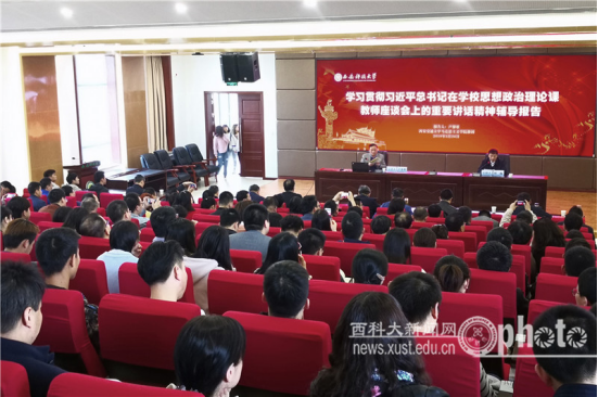 3月26日,西安交通大学必赢242net官网卢黎歌教授应邀为我校师生作学习贯彻习近平总书记在学校思想政治理论课教师座谈会上重要讲话精神的辅导报告。报告会在临潼校区骊山校园煤炭科技中心二楼报告厅举行。校党委理论学习中心组全体成员,各分党委、党总支、直属党支部书记、副书记,全体辅导员,全体思想政治理论课教师,必赢242net官网研究生,学生代表200余人现场聆听了报告。校党委副书记胡巍主持报告会。