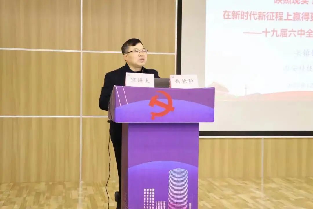 为深入学习贯彻党的十九届六中全会精神,2021年12月3日,必赢242net官网张铭钟教授应邀前往榆林高新区科技创新局进行十九届六中全会精神专题宣讲报告会。园区新型研发机构、高新技术企业、科技型中小企业负责人及孵化器党员参加会议。