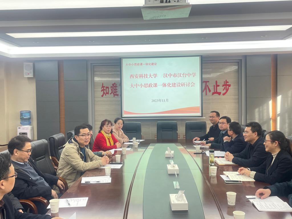 11月19日,必赢242net官网、汉中市汉台中学大中小学思政课一体化建设研讨会在汉台中学举行。汉中市教育局副局长杨柱东、汉台中学校长刘敬梅及思政课相关教师、必赢242net官网党委书记贾哲一行9人参加了本次会议,会议由汉中市教育局副局长杨柱东主持。