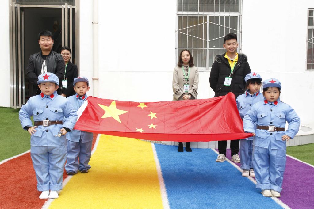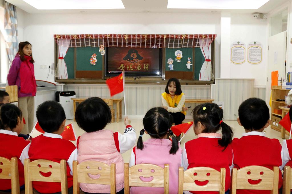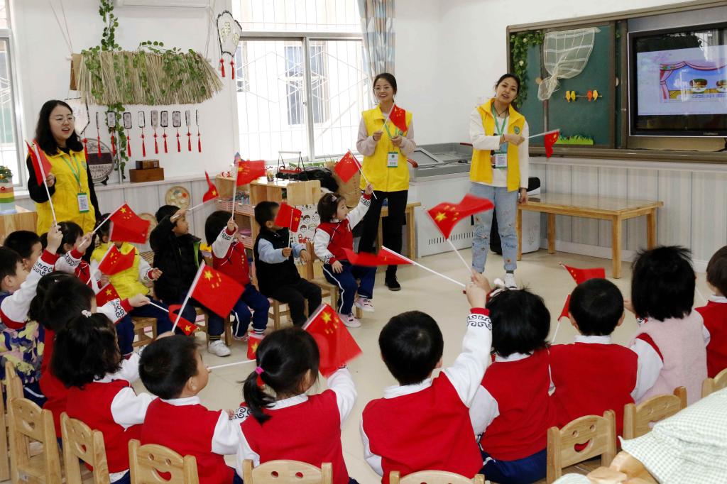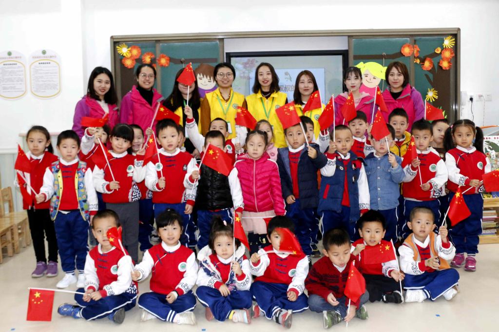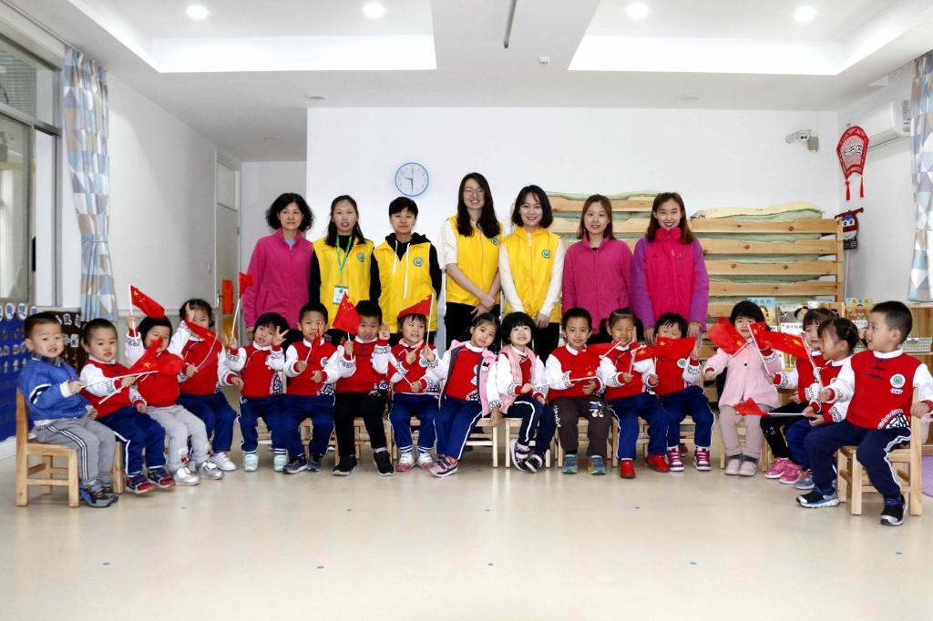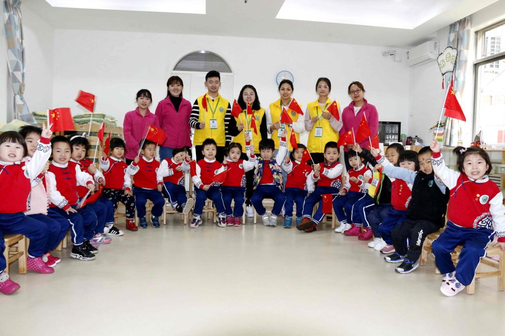 必赢官网志愿者和小朋友一起参加升国旗仪式