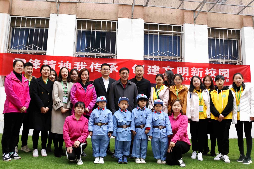 讲雷锋故事 学雷锋精神第一小组成员和幼儿园师生合影