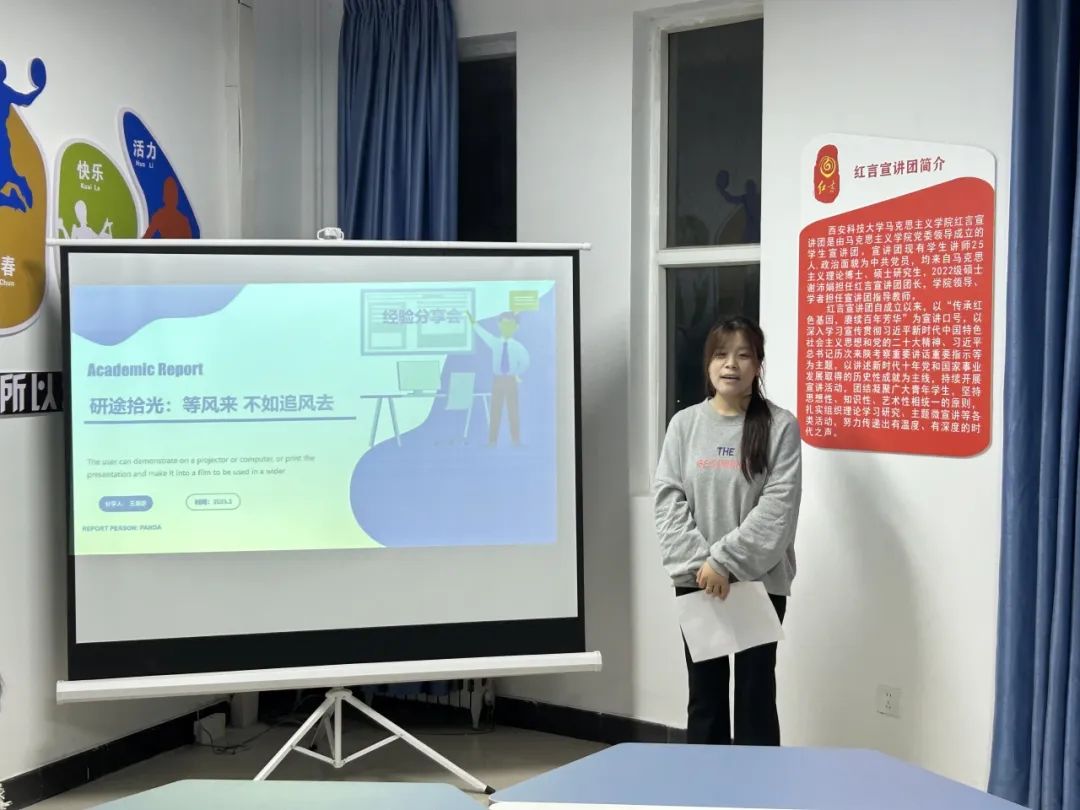 分享会上,王爱龄以“沿途拾光:等风来 不如追风去”为主题,从“个人情况、学习生活、学生工作和建议共勉”四部分展开经验分享。她结合自身发表4篇学术论文(导师一作)、获国家奖学金的经历,强调“勤奋积累”的重要性,提出“以目标为导向拆解任务”的科研方法;在竞赛方面,她以“互联网+”创新创业大赛获奖经验为例,建议同学们“跨学科组队、聚焦社会痛点”;针对学业压力,她分享“番茄工作法”与“运动解压”的心得,鼓励大家“以笔为剑,以梦为马,在自我博弈中成长”。