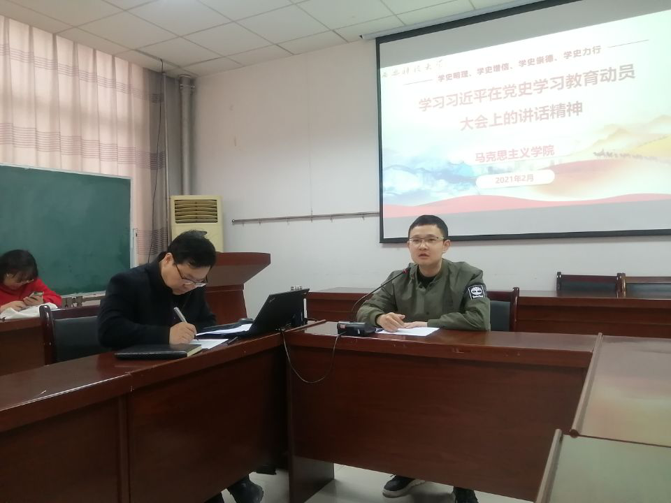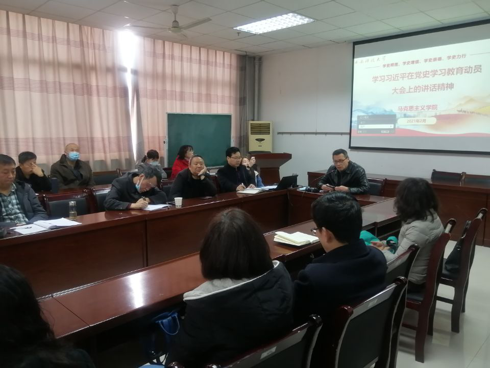 2月27日上午,必赢242net官网在雁塔校区煤炭科技大楼1101会议室召开大会,集体学习习近平在党史学习教育动员大会上的重要讲话精神。学院班子及全体教职工参加了会议。