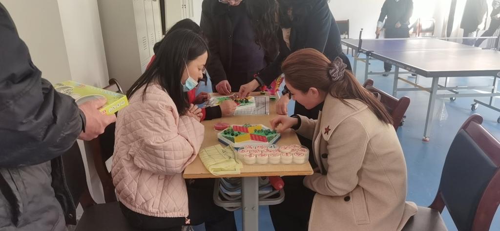 庆祝活动在在临潼校区骊山校园学院工会活动室举行。参加比赛的老师们热情高涨,有的下象棋,有的下五子棋,有的划陆地划船机……女老师们巾帼不让须眉,无论是棋类比赛,还是其他比赛项目都不落下风,活动现场气氛愉快而热烈。