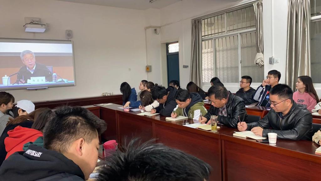 为深入学习宣传贯彻党的十九届五中全会精神,引导思政课教师增强“四个意识”、坚定“四个自信”、做到“两个维护”,准确把握全会精神实质,及时开展全会精神思政课专题教学,必赢官网师生于2020 年 11 月 13 日9:30分别在临潼校区骊山校园一教205会议室及雁塔校区煤科楼1101会议室集体学习观看了“党的十九届五中全会精神”导学报告会。