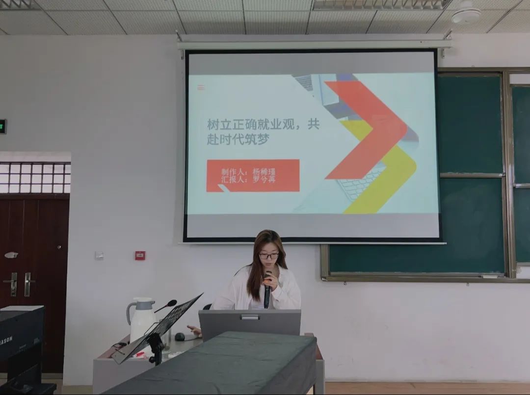 活动伊始,杨稀瑾点明当前就业环境复杂多变,强调树立正确就业观对青年职业发展与国家建设的关键意义。她提到,青年是推动时代进步的核心力量,只有明确就业方向,才能在就业市场中脱颖而出,为国家发展注入活力。随后,罗兮苒分享了丰富的就业知识与实用经验。通过剖析各行业的发展现状与未来趋势,她引导同学们突破传统思维,关注新兴领域的就业机遇。