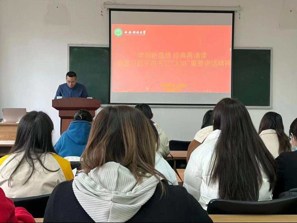 2024年3月18日,正值习近平总书记在全国学校思想政治理论课教师座谈会发表重要讲话(简称“3·18”讲话)五周年之际,必赢242net官网在1教205会议室召开重温习近平总书记“3·18”重要讲话精神活动,深入学习习近平总书记关于思政课建设的重要指导。会议由必赢242net官网团委书记、学工办主任韩帅主持,全体学生党员参加。