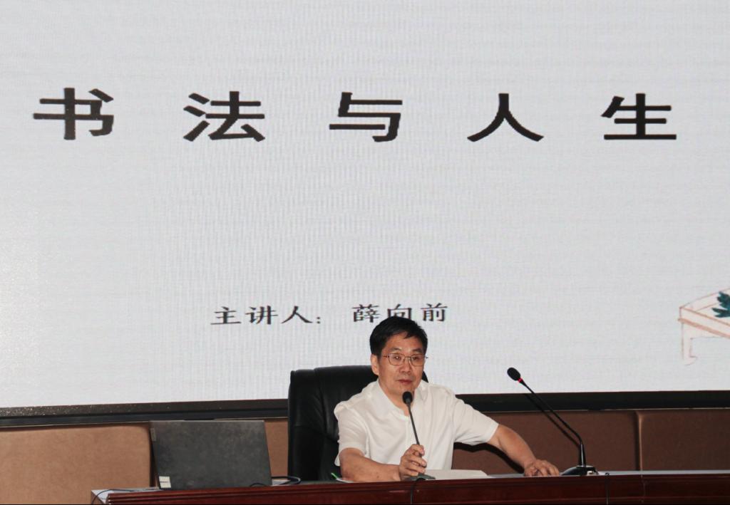 会议伊始,中国传统文化发展委员会副主席薛向前以“书法与人生”为主题,带领全院师生学习和了解历史上著名的书法大家。而后,他以书法家、书法家的书法内容、书法与人生为切入点带领全院师生深入了解书法家和其书法内容背后所蕴含的人生道理和哲理,进而感受中华优秀书法艺术的无尽魅力。最后,他激励广大师生要坚持学习贯彻落实习近平文化思想,以习近平文化思想为指导,做好中国人、说好中国话,写好中国字通过书法感悟和享受儒雅人生。