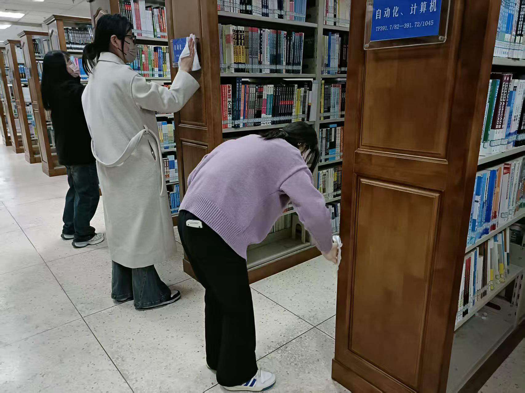 在劳动过程中,志愿者们创新采用"时空交叉作业法"--闭馆时段集中处理密集书库,根据“一书一档”管理系统,归位错位图书;开馆期间错峰维护公共区域,实施“四维净化工程”,提升空间品质。他们团结协作,共克难关,高效率、高质量完成此次志愿者活动。