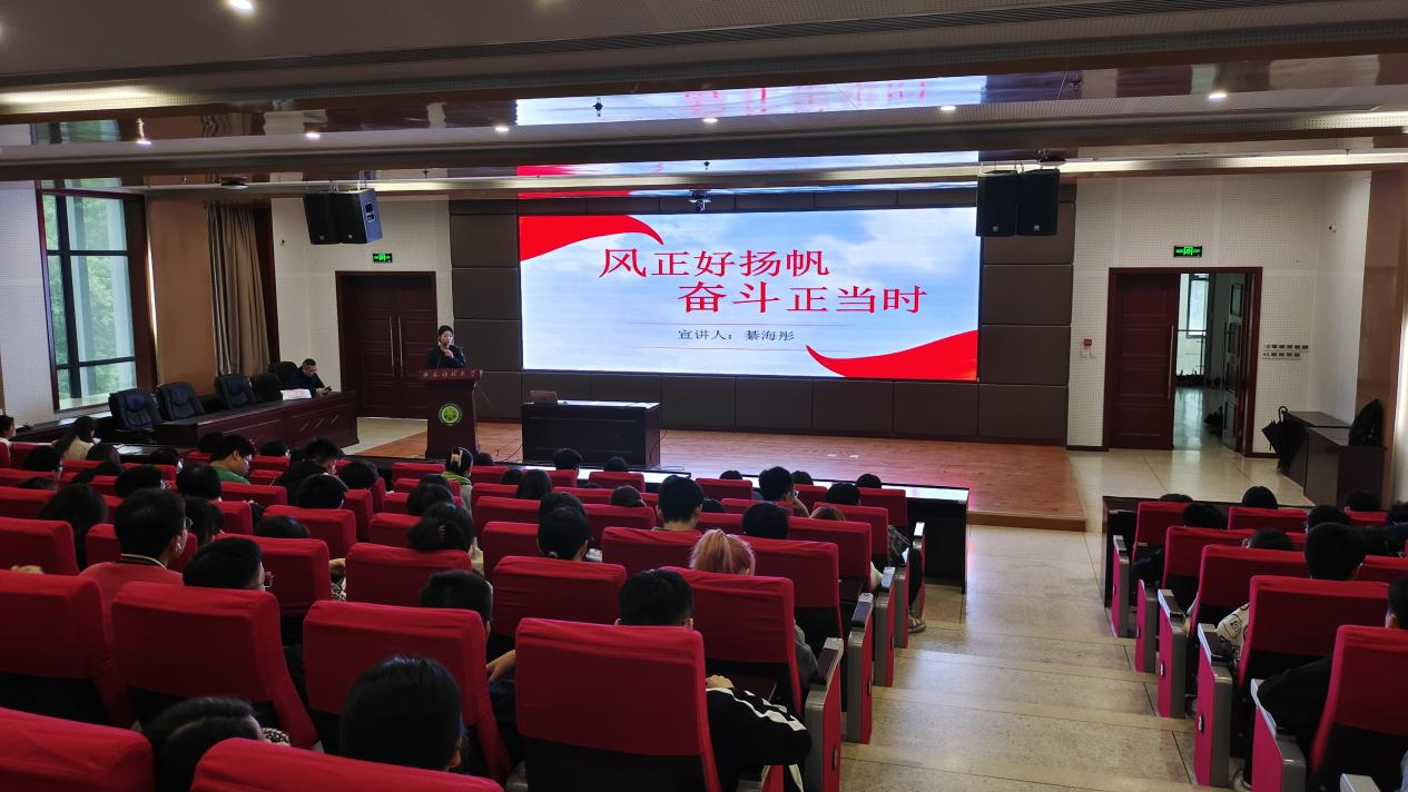 红言宣讲团成员谢沛娟作《颂五四峥嵘,争做担当大任的时代新人》主题宣讲。生动讲述五四运动的历史经过、核心内容、历史意义,号召广大青年要在青春的赛道上奋力奔跑,在知行合一中践行“请党放心,强国有我”的铮铮誓言。