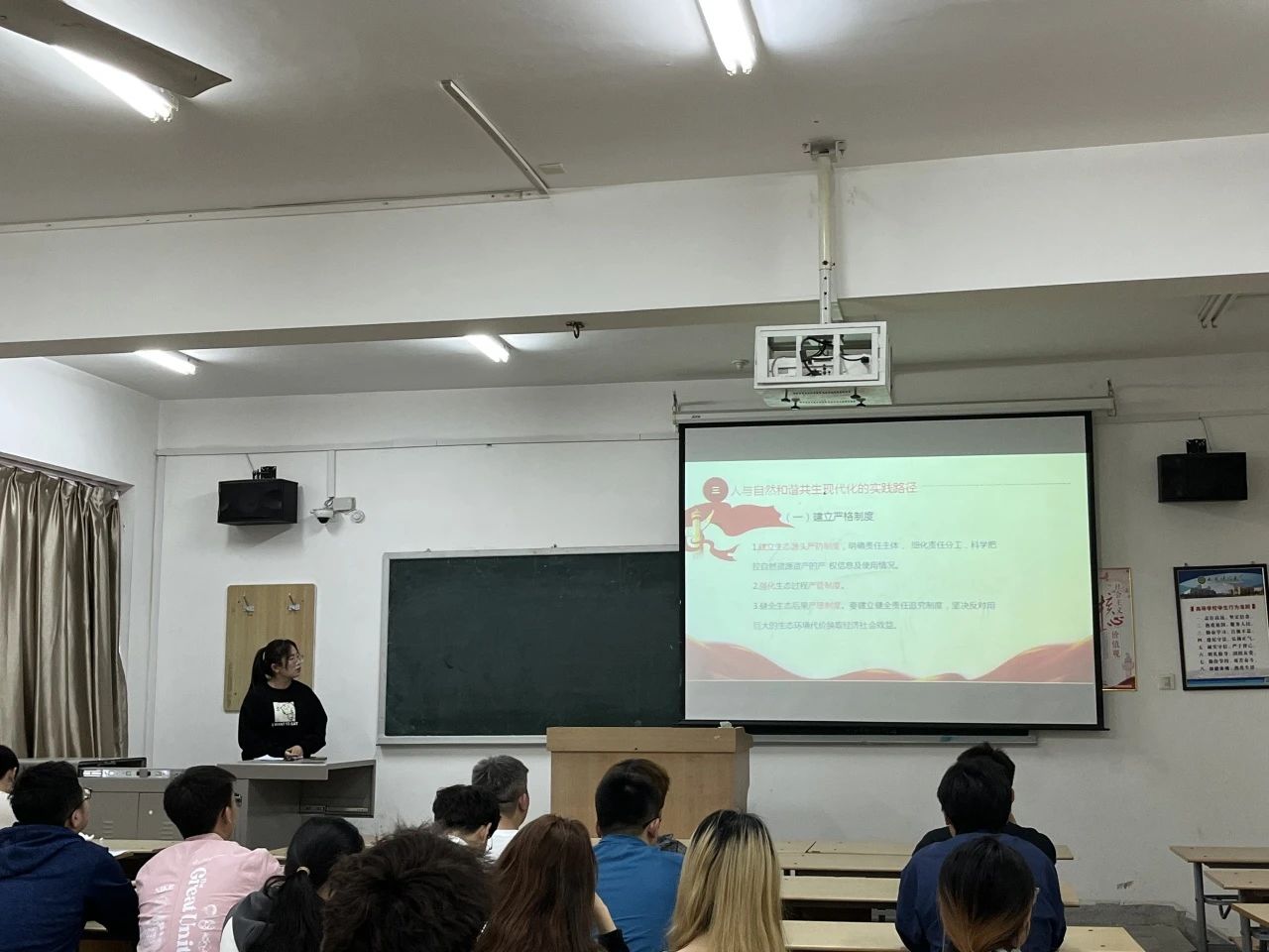 丁洁以“人与自然和谐共生的现代化”为宣讲主题。她首先介绍了人与自然和谐共生现代化的理论基础。其次阐述了人与自然和谐共生现代化的价值意蕴。最后提出了人与自然和谐共生现代化的实践路径。通过这次宣讲,旨在让青年将内在的生态知识转化为外在的实际行动。