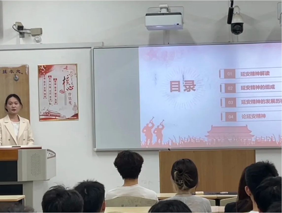 李闫以弘扬“延安精神”为宣讲主题,她讲到,延安精神是中国革命精神的结晶,是我们克敌制胜的坚强精神支柱,是中国特色社会主义现代化建设的强大精神动力。深刻领悟延安精神的内涵、组成、发展历程和习近平总书记对延安精神的相关论述,对继承和发扬延安精神具有重要意义。