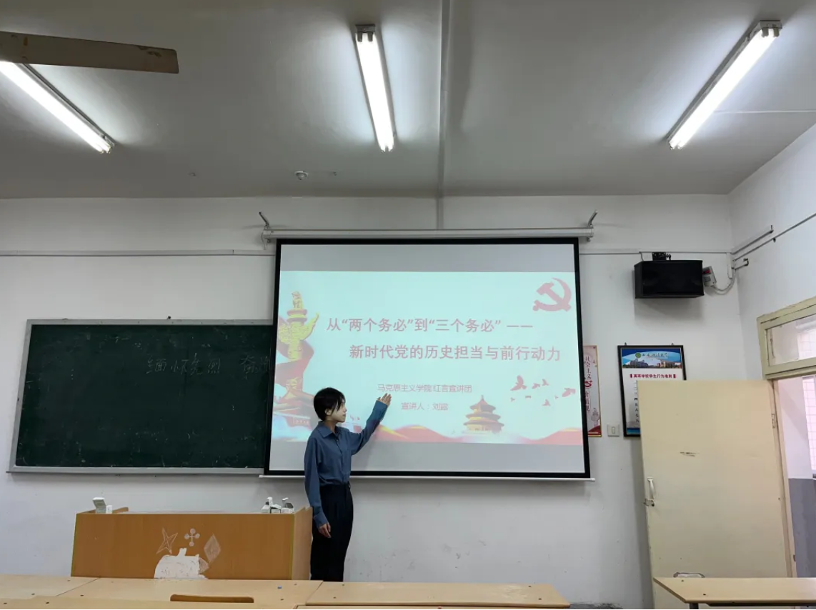 刘露以“从‘两个务必’到‘三个务必’——新时代党的历史担当与前行动力”为宣讲主题。从具有鲜明的时代特色的“两个务必”和“三个务必”提出的背景、内涵和对新时代的意义出发进行宣讲,突出体现党在不同历史时期的深刻认识,进而彰显党引领国家和人民不断前行的责任担当。