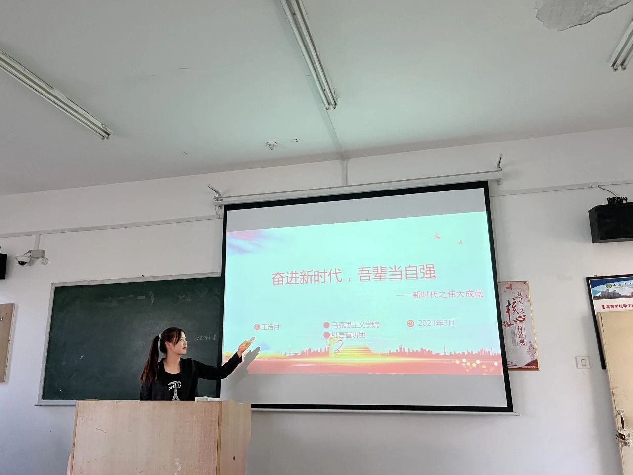 杨玉珠以“立足中华优秀传统文化,培植自强不息精神”为宣讲主题。自强不息是中华人民拼搏奋斗的文化基因,是中华民族源远流长的精神支柱。自古以来,无数仁人志士迎难而上,不屈不挠,为了理想不懈奋斗。通过宣讲自强不息精神在古代、近代及现代的体现展开,呼吁新时代青年立青云之志,行奋进之弩,划责任之桨。