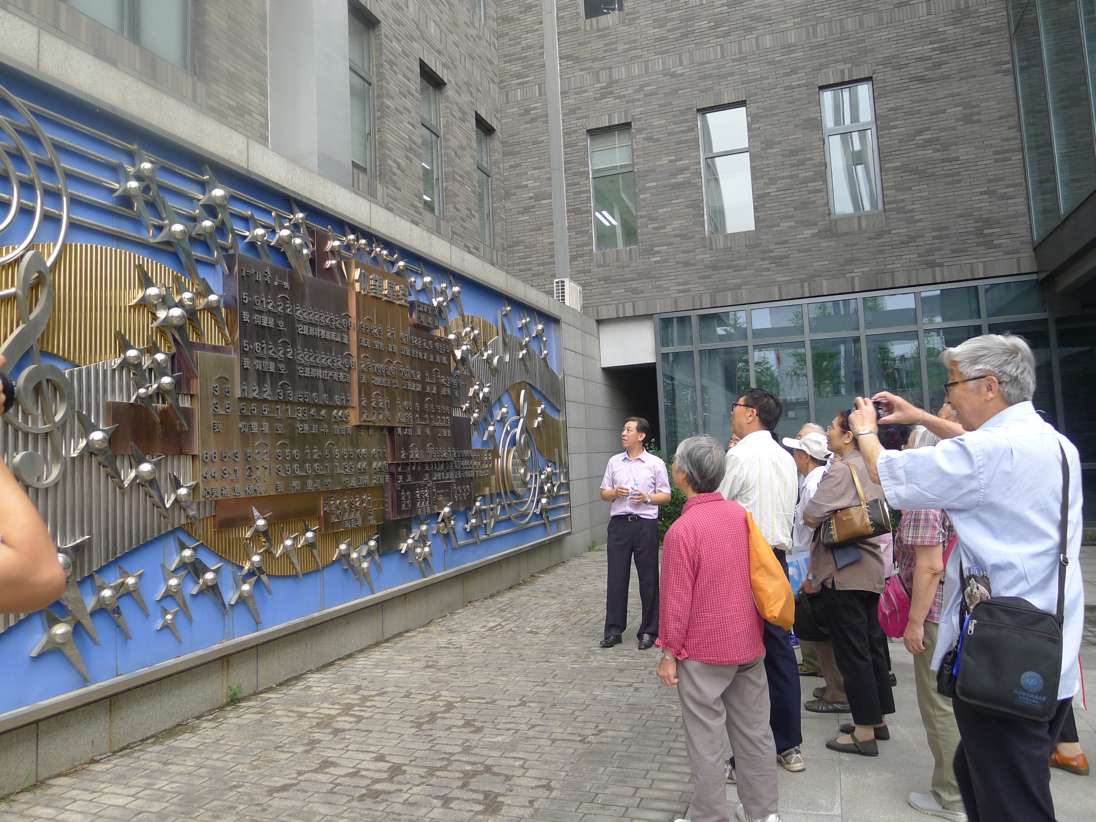 上午十点,沙河校区党委书记陈志英教授首先向各位老教师介绍了沙河校区总体规划和在建情况,并对管理模式进行解读,图文并茂展示了校区文化活动和校园风景。随后,陈志英书记带领老教师们参观了多媒体演示实验室、教室等教学设施,并在新建的北航校歌墙前带领大家高唱“仰望星空”,之后并在校训钟前合影留念。临近中午,虽然天空乌云密布,但一点不影响大家的参观兴致,一边呼吸着新鲜空气,一边感受着浓郁的校园文化氛围。