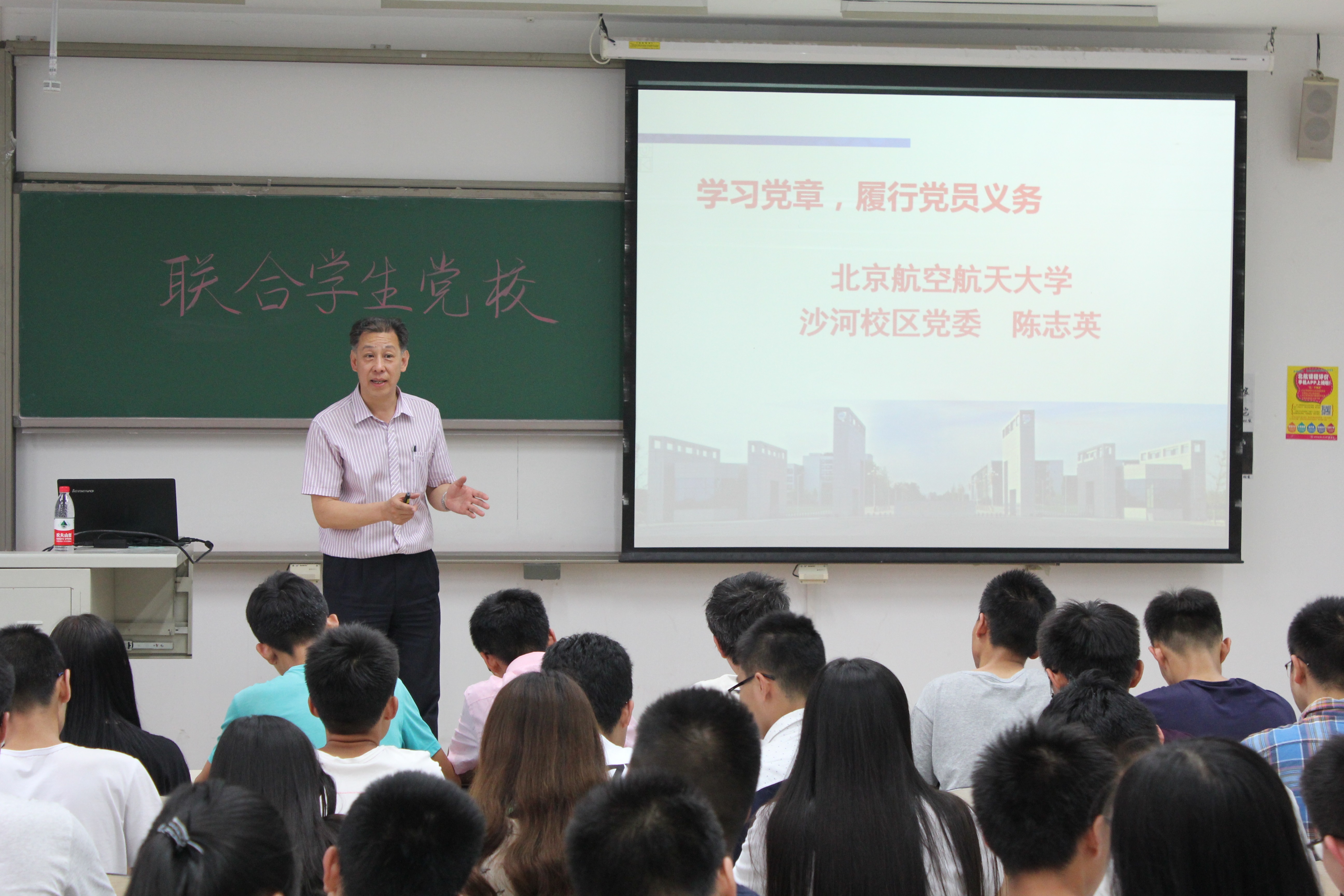 5月27日晚,beat365官方网站、新媒体艺术与设计学院、化学与环境学院联合学生党校第四次党课在沙河校区教3-101举行。本次党课邀请到了沙河校区党委书记陈志英老师,他为我们带来了一节题为“学习党章,履行党员义务”的精彩党课。
