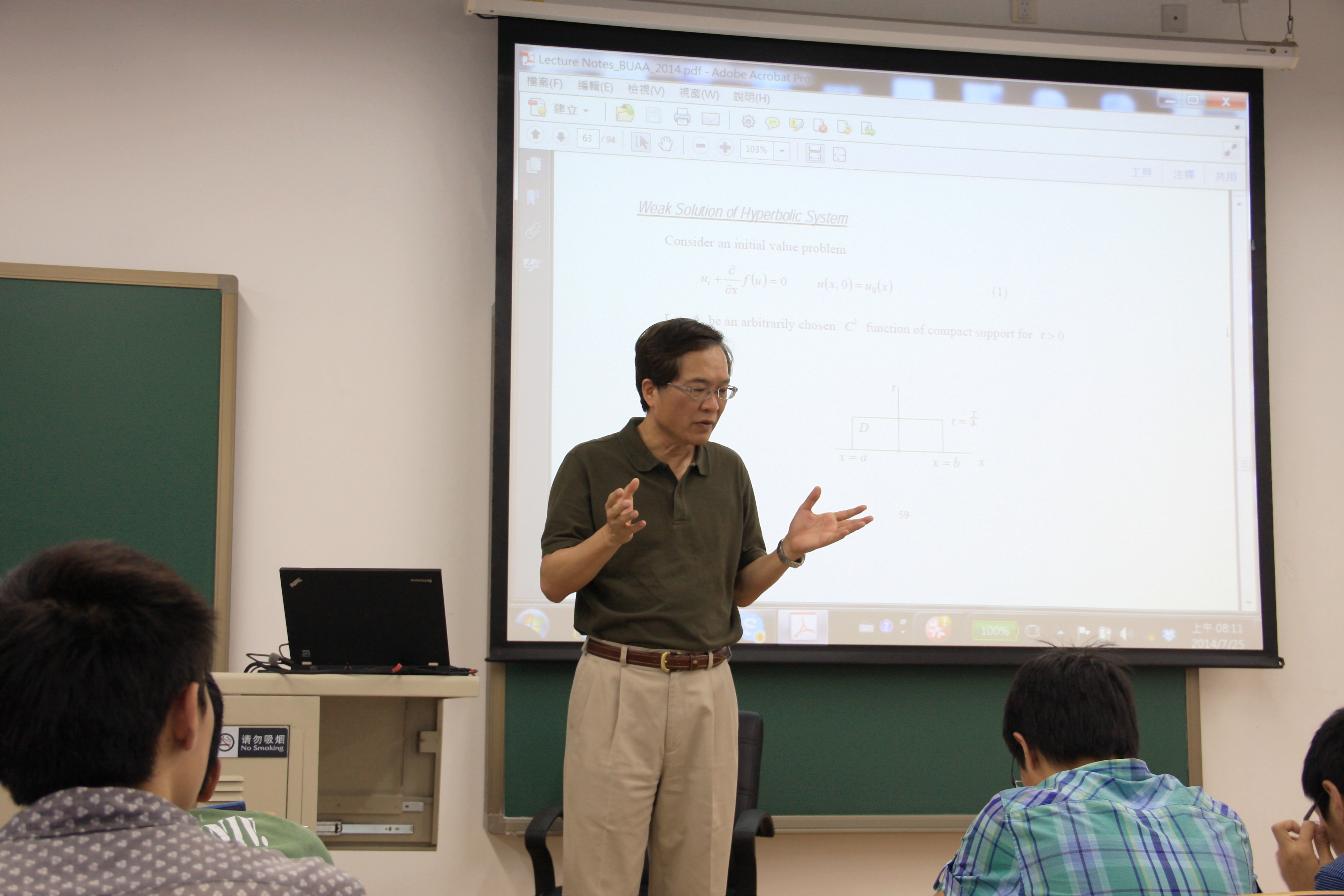 2014年7月21日至26日,应北航beat365官方网站的邀请,台湾成功大学航太系陆鹏举教授来我院进行学术访问,并给我院本科生和研究生开设了“流体力学特论”引智课程。