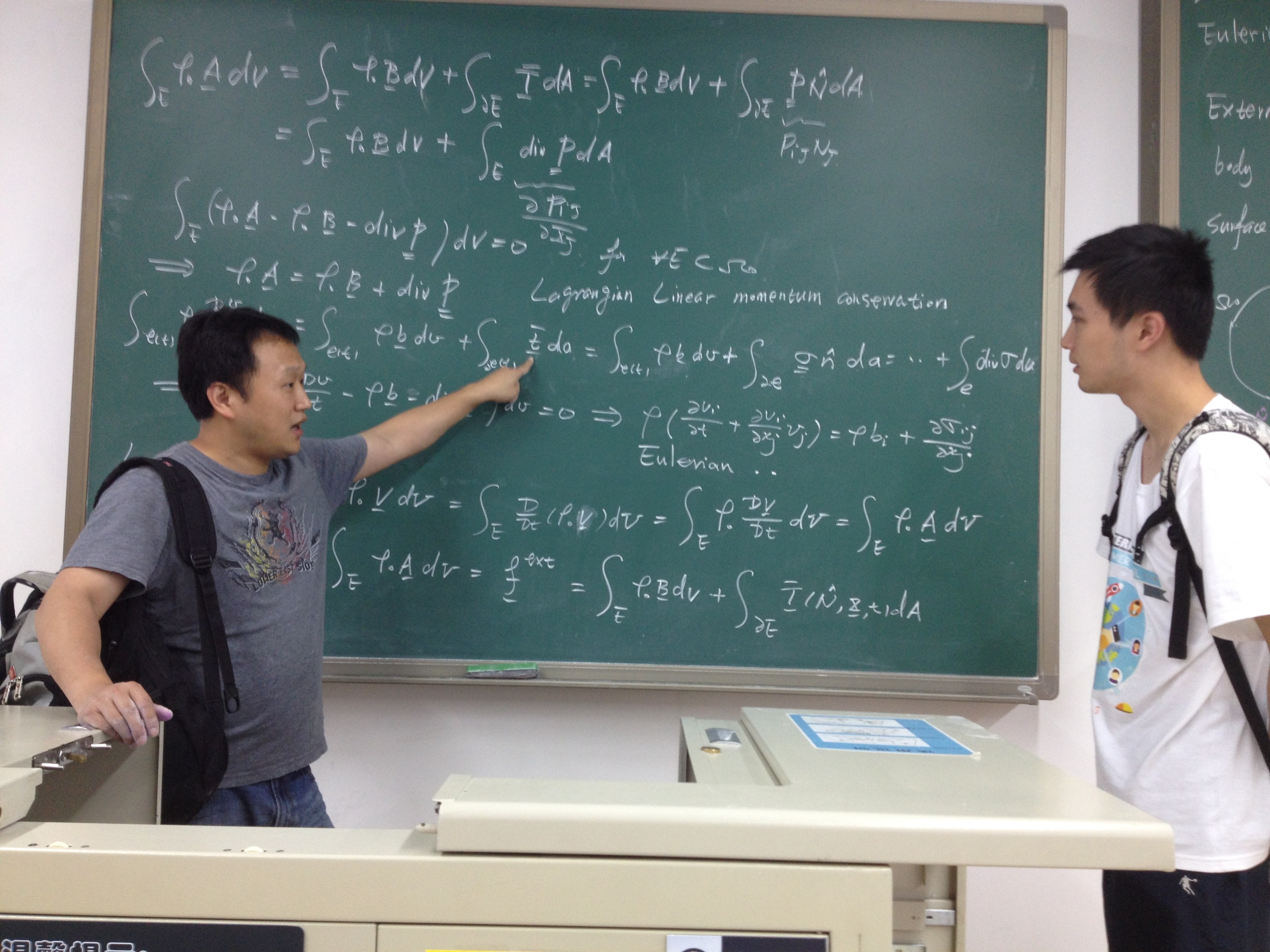 在beat365官网访问期间,Li教授开设的“连续介质力学”引智课程,吸引了我院本科生和研究生的积极参与。Li教授采用他在凯斯西储大学授课的原版讲义,将课程内容分为4部分,首先介绍了向量和张量,并针对同学们不太熟悉的张量做了详细的解说;接着为同学们详细介绍了变形体的运动形式;然后从质量守恒、动量守恒和能量守恒三个方面向同学们讲解了连续介质力学中的守恒定理;最后对本构关系进行了介绍。
