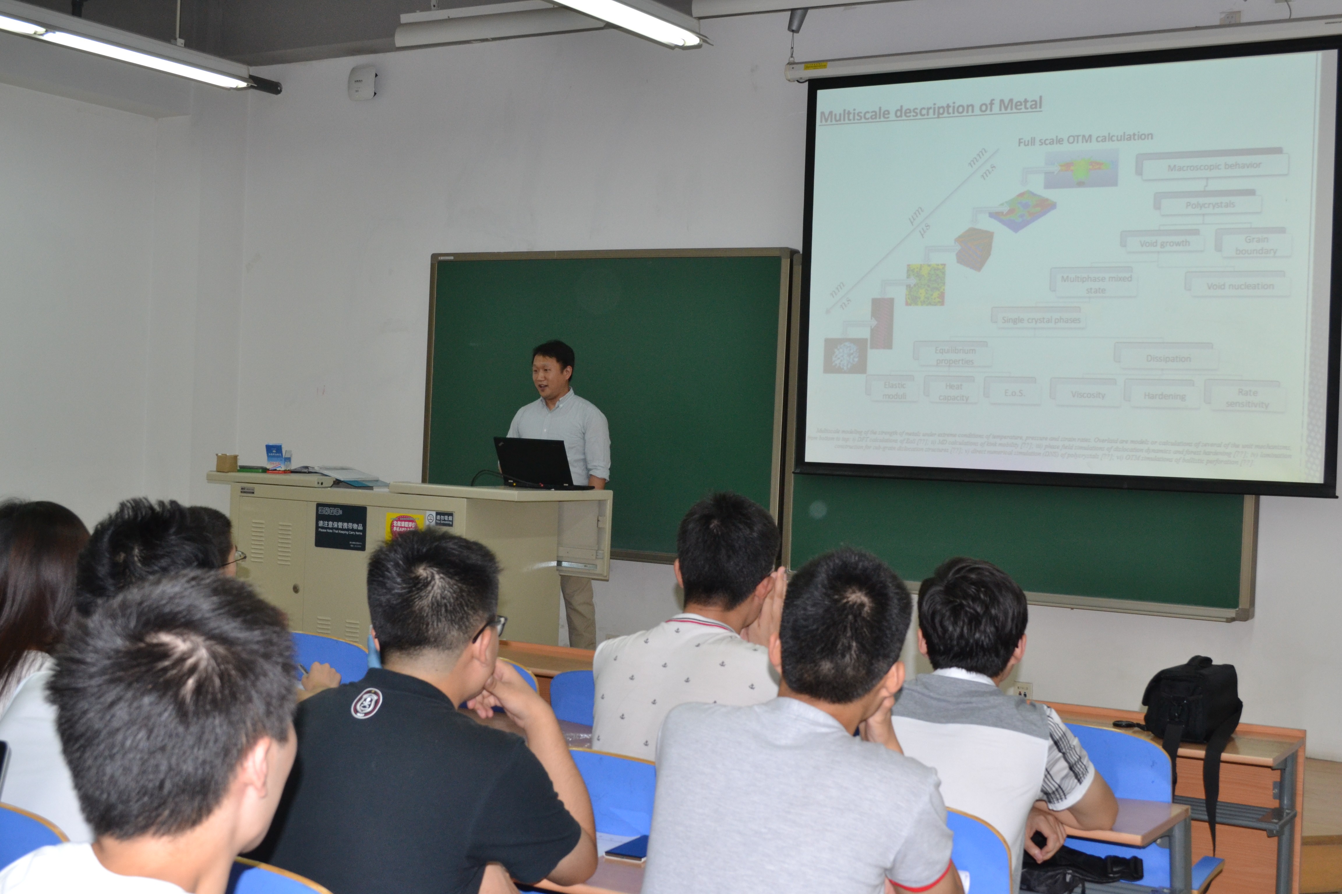 在课程结束后学院还邀请Li教授开展了一场精彩学术报告,此次学术交流吸引了学院众多的老师与研究生参与,Li教授以《多晶结构的失效模式分析与模拟》为报告主题介绍了他的研究工作并基于此进一步展示了连续介质力学理论在科研及工程应用中的重要作用。