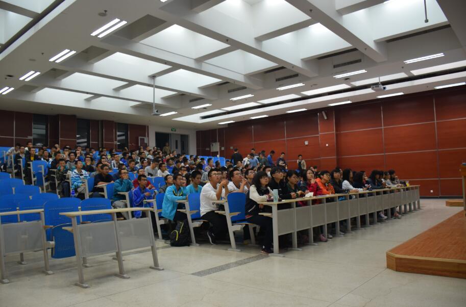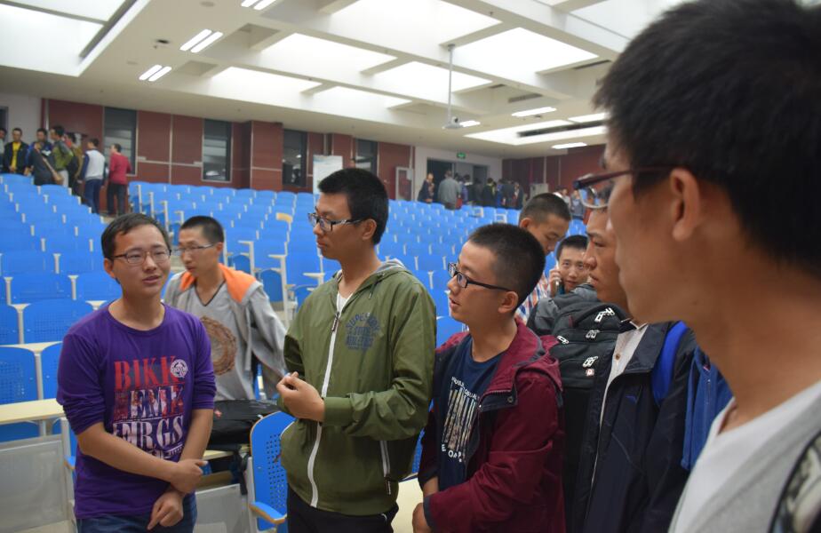 自由交流阶段,各个项目的展板前都挤满了15级同学,他们之中有人在自己思考,有人在与同伴探讨,更有人在积极地向学长们请教,学长们也都热情而倾心地解答着大家的问题,并给予了学弟学妹们真诚的鼓励,希望他们也能够投身到科技实践的大军中来,青出于蓝,超越自己,创造出更多更加优秀的项目。