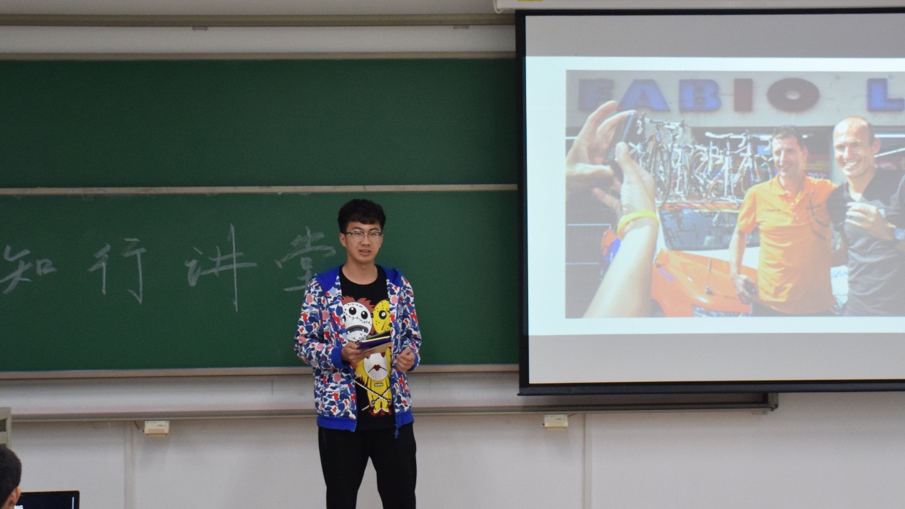 首先刘思博同学给我们带来了他特别喜爱的足球明星罗本的故事。刘思博同学从罗本的外号入手,向我们讲解了罗本叫做“小飞侠”的原因以及他的技术动作特点“内切”。除此以外,思博同学还饶有兴致地跟我们介绍了一些关于罗本的绯闻等等。众所周知,思博同学是系足球队的主力队员,我们从他这次的演讲中更看到了他对于足球的热爱。