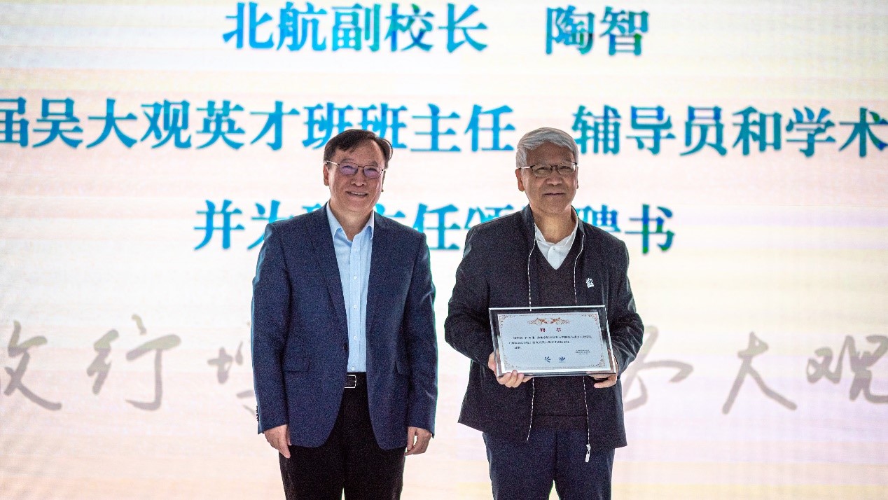 陶智副校长宣读了第九届吴大观班主任、辅导员和学术导师名单,并为班主任尹泽勇院士颁发聘书。