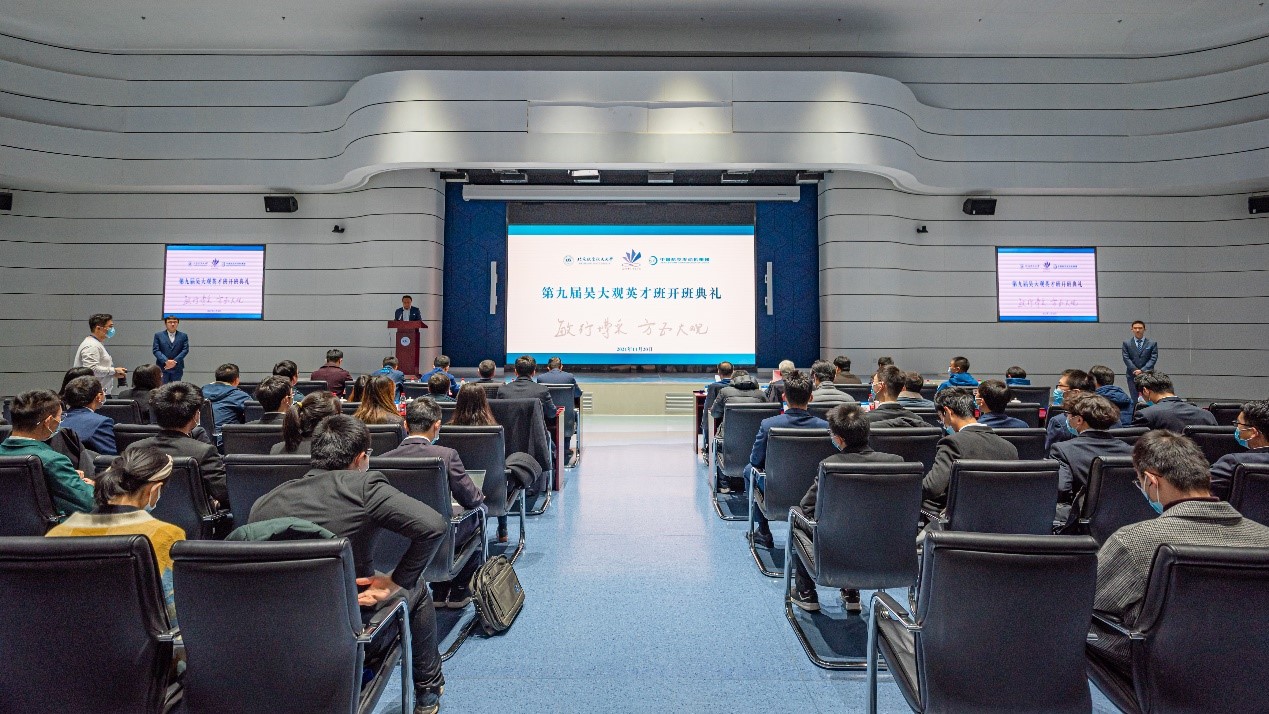在开班典礼上,陶智副校长首先代表学校,向吴大观英才班的同学们表示热烈的祝贺,向关心和支持北航建设和发展的中国航发、企业、校友们表示感谢。他指出,多年来,双方共建国家试点学院,形成了吴大观英才班、北航-中国航发校园菁英会、航空强国中国心教育基金等多个校企共建人才培养举措,在全国高校中起到了良好的示范引领和带动辐射作用。他强调,航空发动机对于国家具有重要战略意义,目前党和国家对航空发动机高度重视,全国人民翘首以盼,航空发动机正处于发展的最好阶段。他对同学们提出了殷切的期望,希望同学们厚植空天报国情怀,珍惜航空发动机大好的发展机会,不负期待,有所作为。