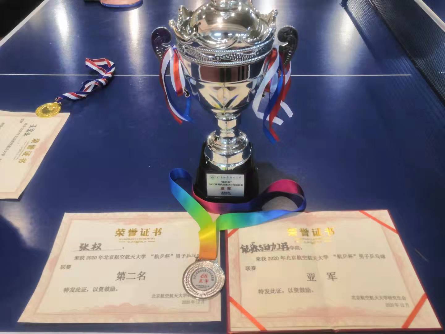 作为北航乒乓球校队的一员,他还曾取得校级“新生杯”比赛冠军、校级“航乒杯”男单亚军、团体亚军的优异成绩。