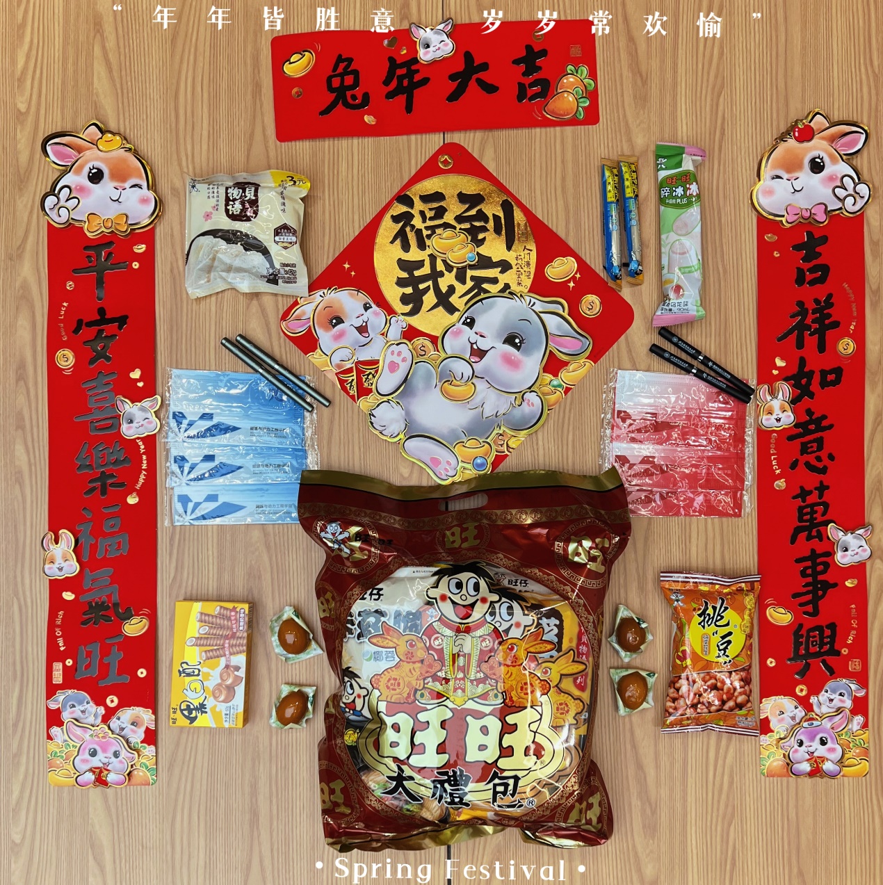 学院为留校学生们准备了新春大礼包,包括春联、零食礼包、学院文创及防疫物资等,为留校学生们送上贴心的祝福,祝福学生们度过一个平安、充实、愉快、有意义的寒假和春节。