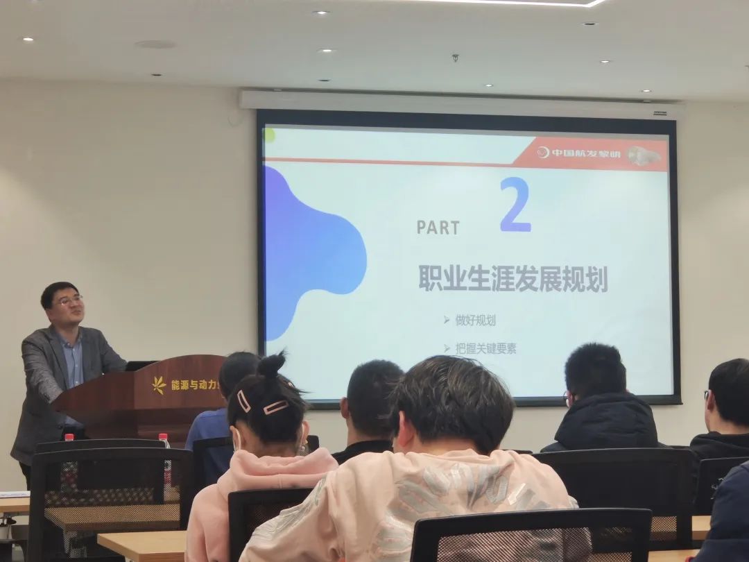 宣讲阶段,金杨介绍了黎明公司人才政策。黎明公司聚焦科学前沿,为我国航发事业做出巨大贡献;重视人才培养,关注人才的成长与提升;鼓励科研攻关,薪酬向一线倾斜、向骨干倾斜。