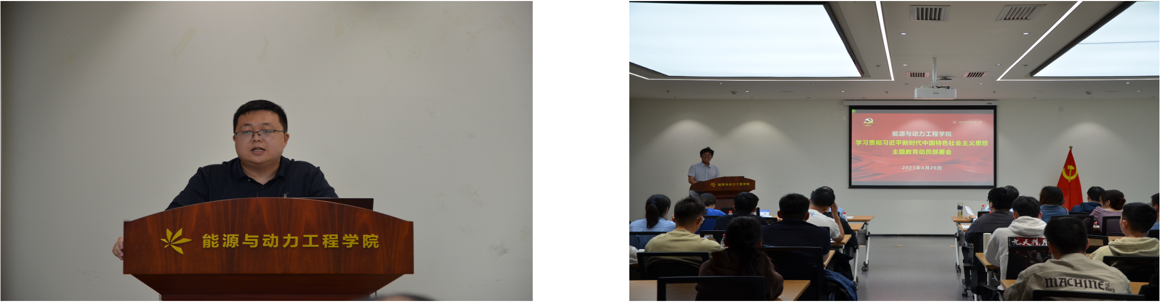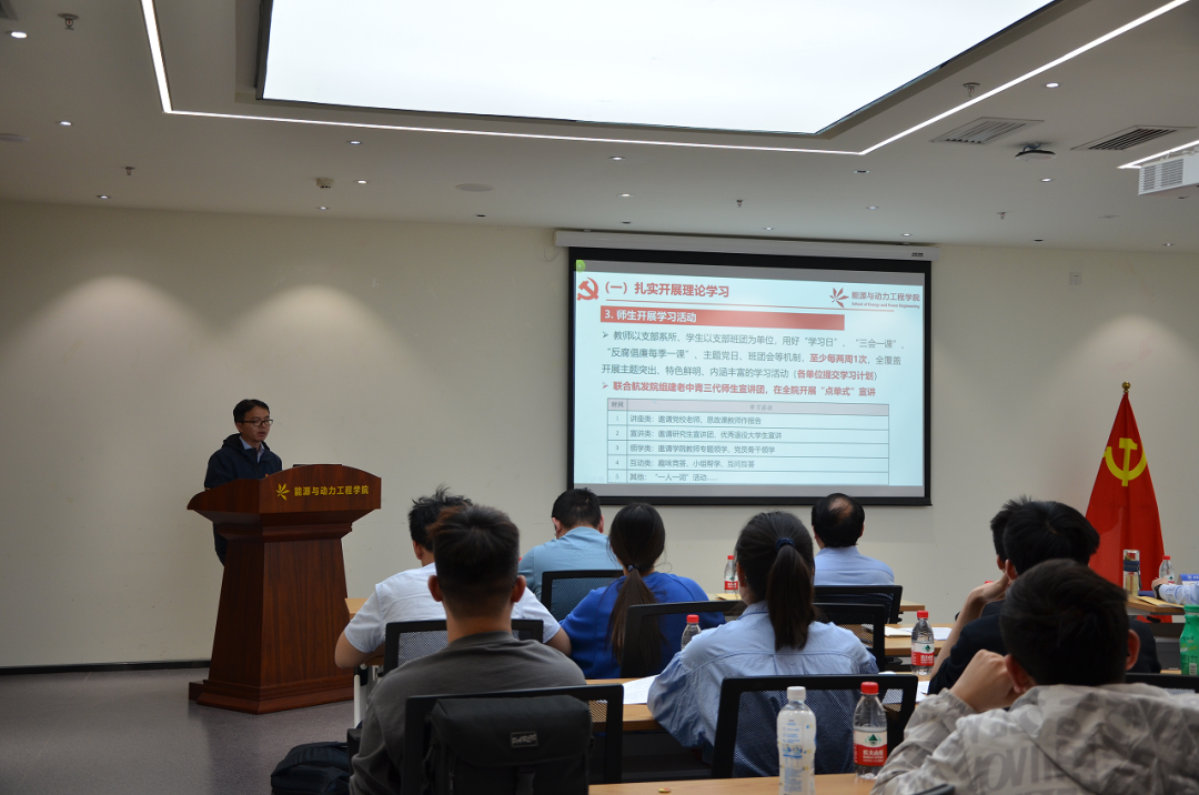 工程热物理系教师党支部书记李育隆、SY22044硕士党支部书记李思宸作为党支部书记代表发言,全体师生党支部书记现场交流研讨,谈认识,谈经验,谈目标,谈决心。