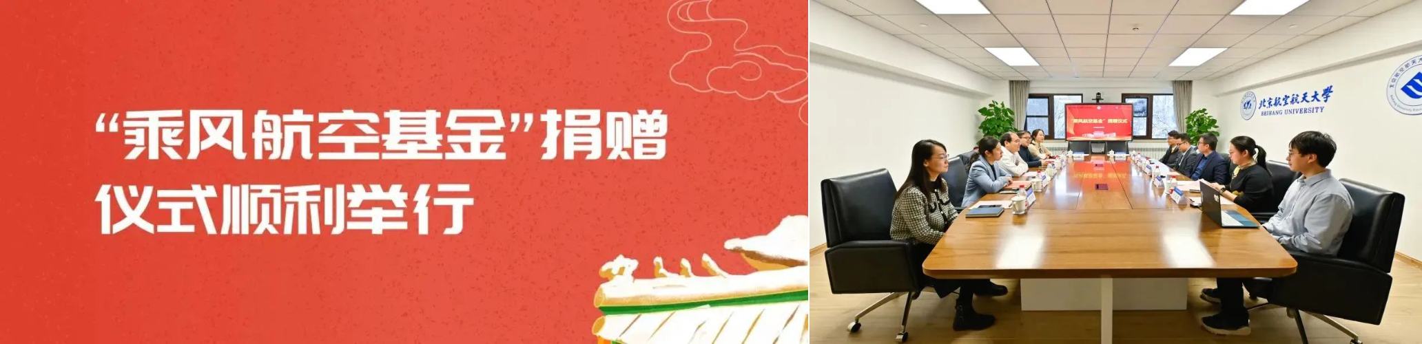12月12日上午,“乘风航空基金”捐赠仪式在北航校友之家举行。无锡乘风航空工程技术有限公司董事长沈涵、副总经理卫喆,学校计划财务部副部长、教育基金会秘书长颜江芬,beat365官方网站党委书记董卓宁、党委副书记谷萌等参加捐赠仪式。