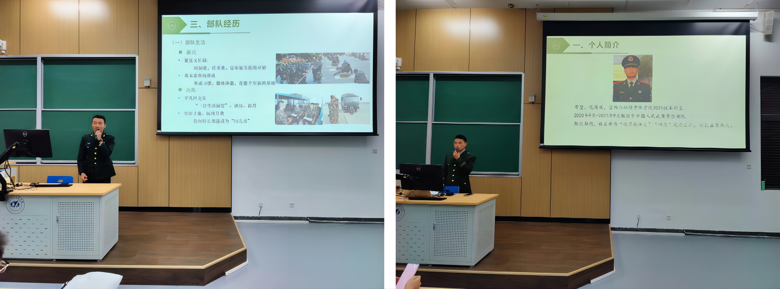 活动中,退伍大学生士兵代表夏勒根、常堃分享了自己的从军经历,讲述了自己在平凡岗位上不平凡的经历。夏勒根同学分享了自己在部队的训练日常以及退役后的感想感悟;常堃同学分享了自己的入伍动机,执勤经历以及训练科目。他们表示,参军报国不仅可以强健体魄、增长见识,还增强了抗压能力,对自身发展影响深远。同时,他们也呼吁同学们响应祖国号召,积极参军报国。