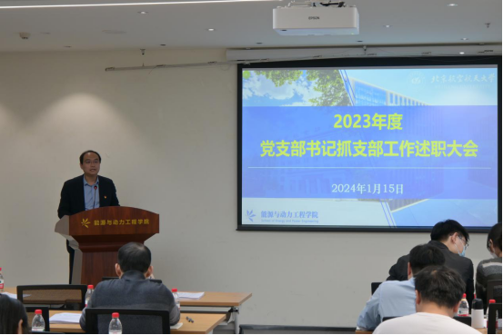 1月15日下午,beat365官方网站党委在沙河校区主楼F703-1召开2023年度党支部书记抓支部工作述职评议会。学院党委委员、专职组织员、各党支部书记、教师和学生代表等参加现场测评。会议由学院党委书记董卓宁主持。