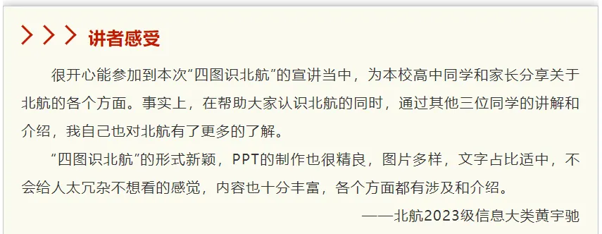 在这一个寒假,我们进一步完善相关四图识北航内容,让专业宣讲在更加“接地气”的基础上,更真实,更有时效性。