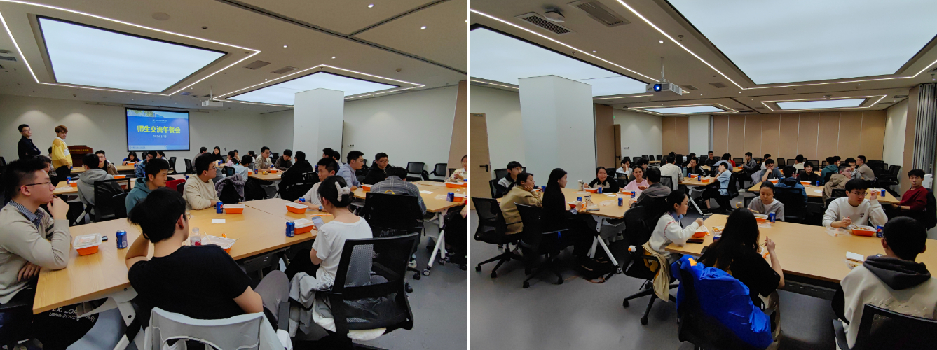 午餐会上,老师向同学们介绍了学院发展历史、学科专业方向、行业趋势及未来就业前景等,对于同学们提出的关于专业培养方案、科创项目、研究方向等方面的提问进行详细解答。老师们还分享了个人成长经历、科研经历和教学心得,让同学们受益匪浅。现场氛围融洽,师生畅所欲言,同学们在轻松愉快的环境中加深了对学院的了解。