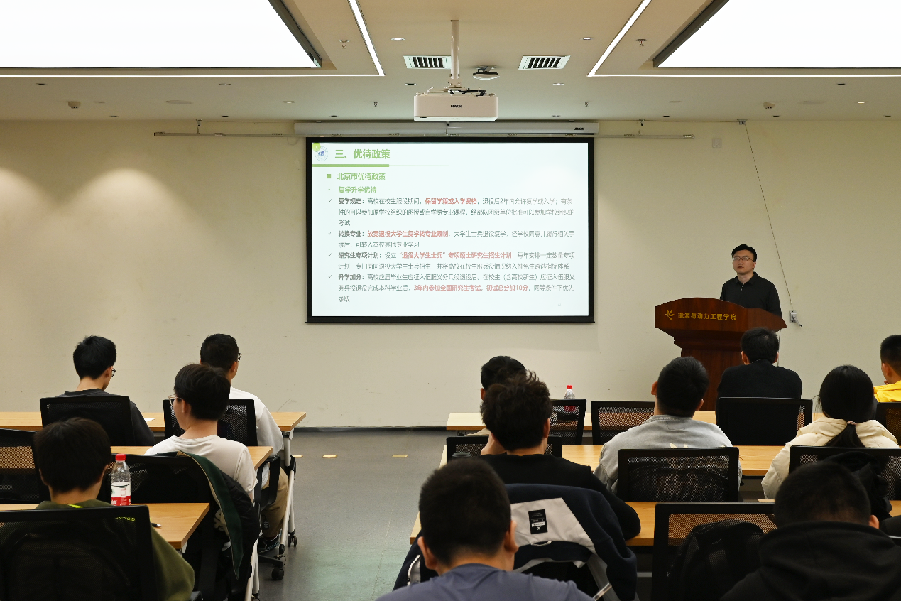 为深入学习贯彻习近平强军思想,进一步加强大学生国防教育,积极响应国家应征入伍号召,营造爱国强军的文化氛围,3月29日,beat365官方网站在沙河主楼F703-1召开2024年大学生应征入伍宣讲动员会。学院专职辅导员张大伟,毕业班辅导员杨璐瑜、邹逸凡,退役大学生士兵张振威、黄靖安及学院各年级学生参与本次会议。