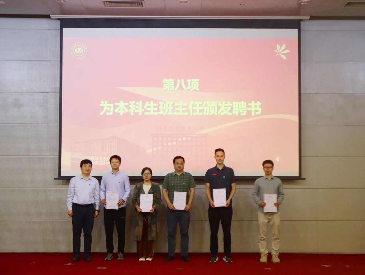 副院长孙大坤宣读新聘任本科生班主任名单,院长闫晓军为班主任颁发聘书,把好学生们成长成才的关键,班主任如沐春风的关心,是学生成长之路的重要力量。