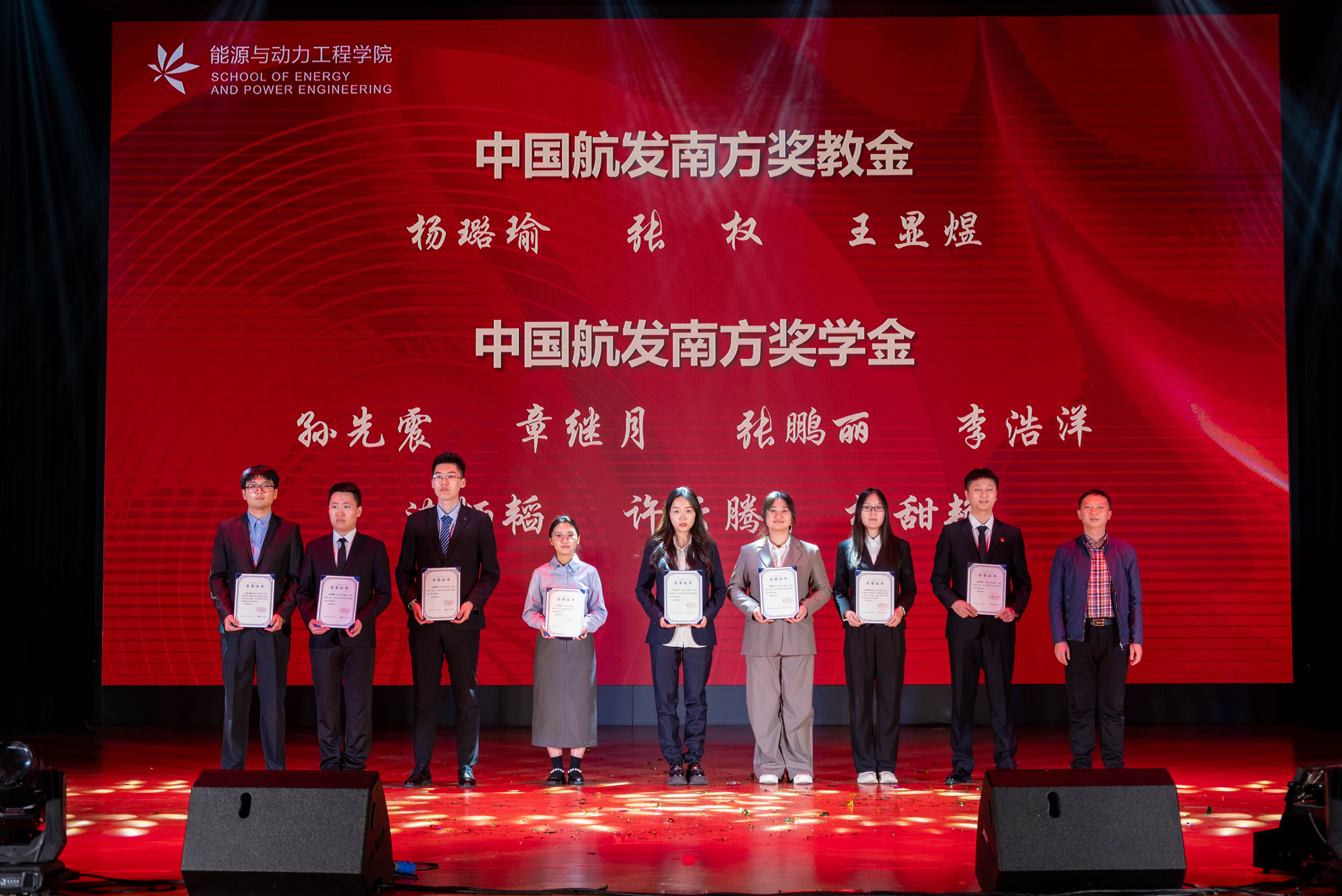 中国航发南方采购与供应链管理部党支部书记、副部长吴荣晖为中国航发南方奖学金和中国航发南方奖教金获奖师生颁奖。