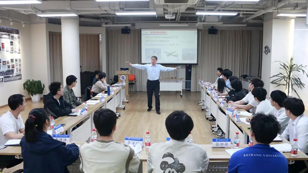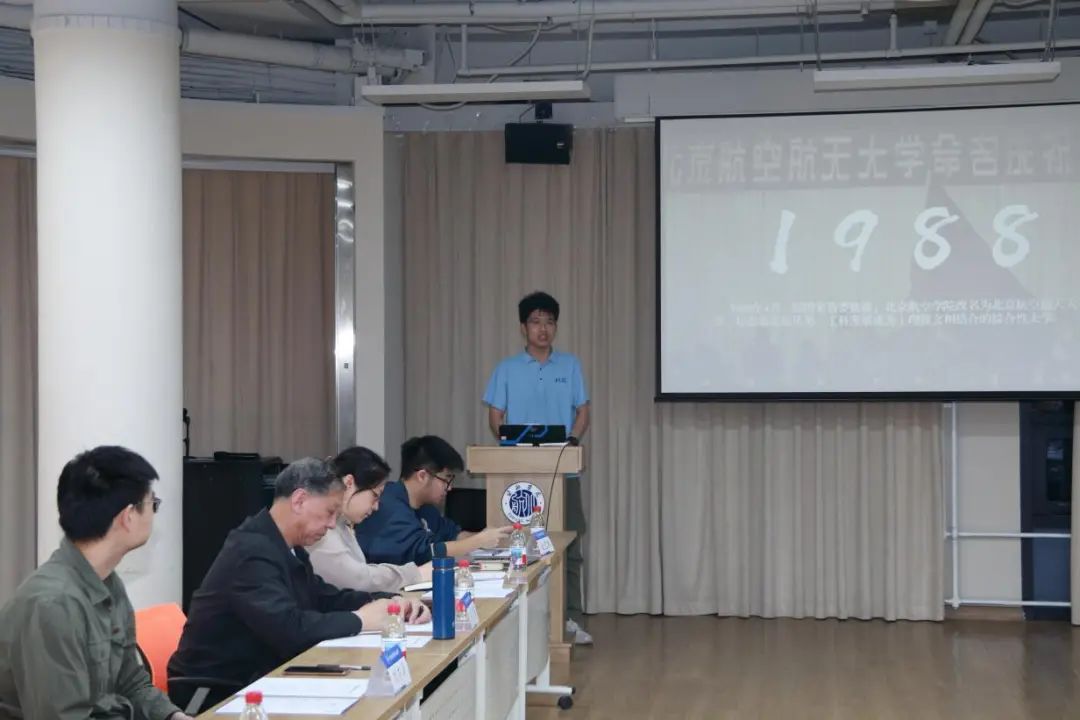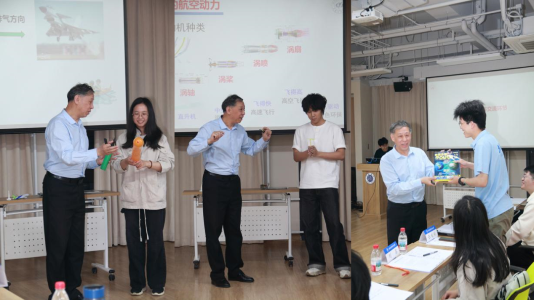 宣讲团成员张峻彩展示了“空天报国七十载,科技启航向未来”主题课程。张峻彩将复杂理论转化为青年视角的生动表达,展示了建校以来北航在航空飞行器、新型动力等方面的成就;并介绍了关于航空发动机的科普内容,以贴近生活的案例解释了燃烧室的分类、相似原理等硬核知识。