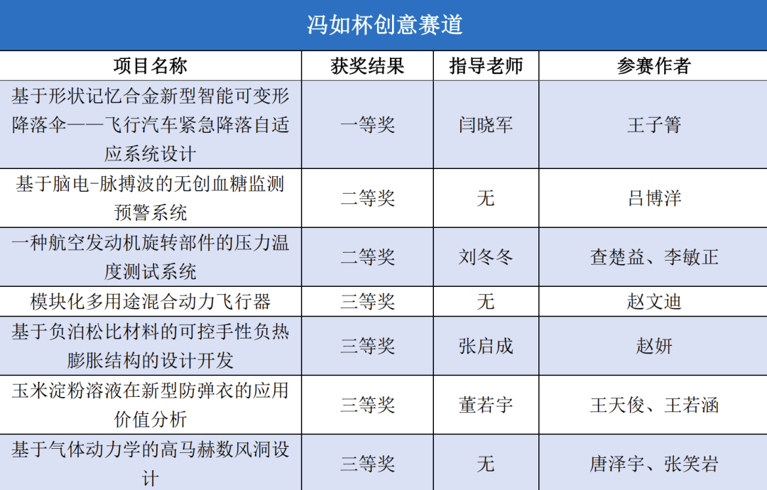 动力学院学子共有159个项目参加本届“冯如杯”的激烈角逐并斩获优异成绩。主赛道本科生制作组二等奖8项、三等奖12项,主赛道本科生论文组一等奖1项、二等奖4项、三等奖8项,主赛道研究生制作组三等奖2项,红旅赛道铜奖1项,创意赛道一等奖1项、二等奖3项、三等奖4项。