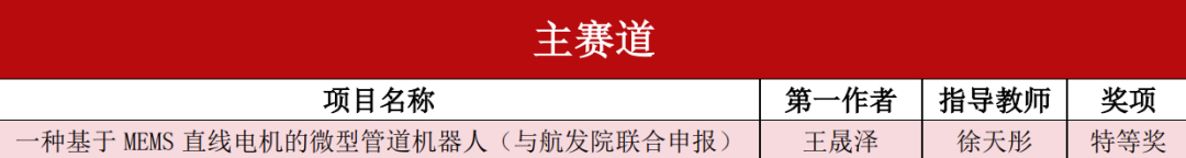 beat365官方网站与航空发动机研究院联合申报并指导的项目《一种基于MEMS直线电机的微型管道机器人》斩获主体赛特等奖。