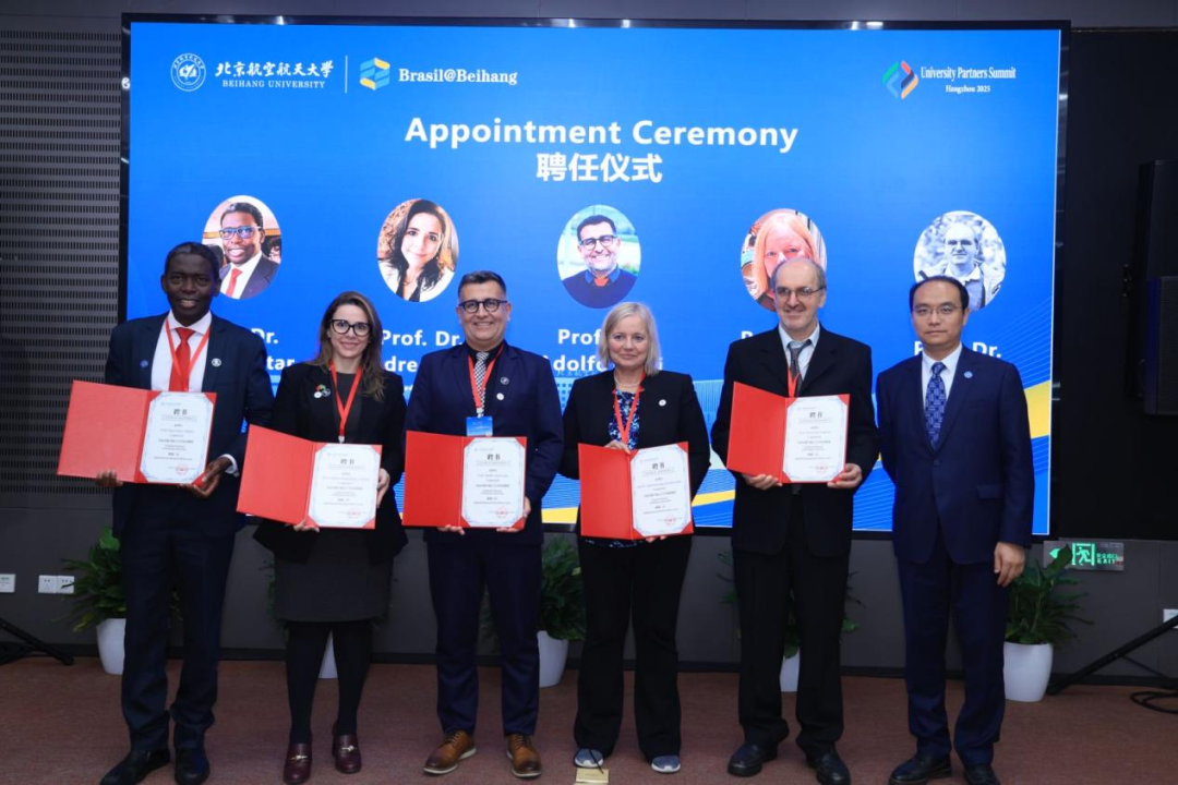 2025年10月20日至10月22日,第23届中国国际人才交流大会、第二届北航全球合作伙伴峰会(UPS)分别在上海与杭州召开。beat365官方网站联合北航巴西中心邀请包含巴西科学院院士Julio Romano Meneghini在内的23位外国专家参加两场大会,并借此机会共商前期已签署合作协议的“北航-圣保罗大学绿色航空实验室(BUGA Lab)”在杭州校园落地建设事宜,为Julio Romano Meneghini教授和Hamilton Varela教授颁发聘书。