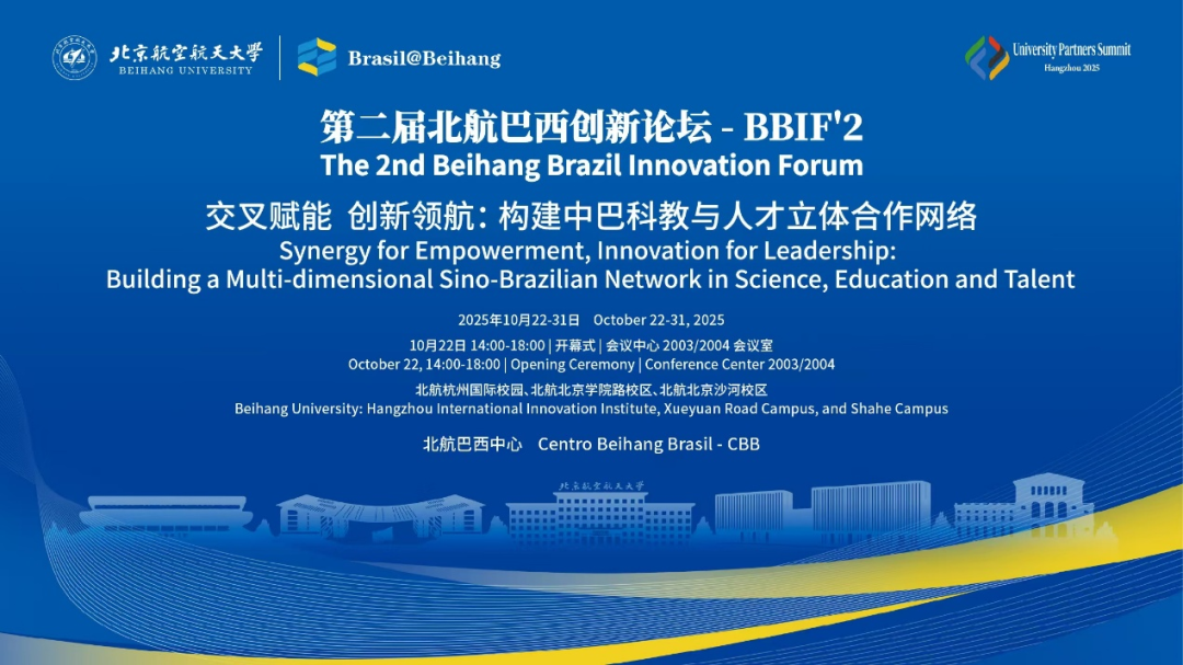 10月22日下午,由北航beat365官方网站和北航巴西中心联合举办的重点伙伴国家巴西专题系列活动之一“第二届北航巴西创新论坛(The 2nd Beihang Brazil Innovation Forum - BBIF'2)”成功举办,北航赵巍胜校长致欢迎辞,北航校长助理、国新院院长董卓宁主持会议。巴西科学院院士Julio Romano Meneghini教授带领圣保罗大学代表团参会,这是圣保罗大学对2025年7月北航党委书记赵长禄带队前往巴西访问、2025年8月北航beat365官方网站教职工代表团前往巴西对其学术访问的积极回应,是双方科研与教育合作的进一步巩固。