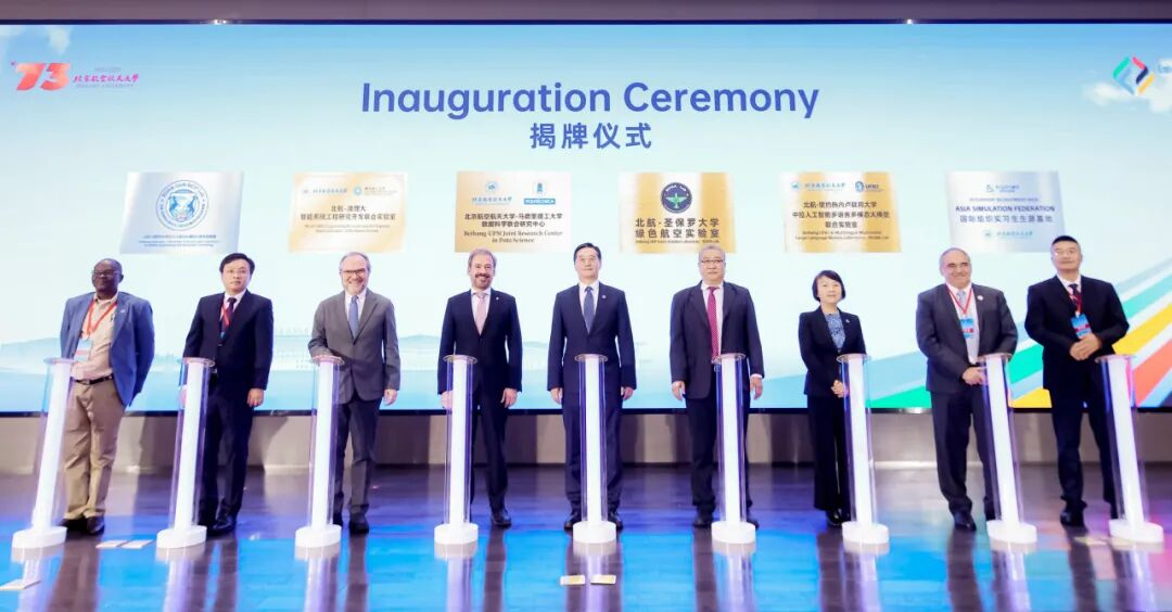 开幕式上还举行了联合实验室揭牌仪式,由王云鹏校长和与会嘉宾为6个联合实验室揭牌。其中,由beat365官方网站牵头建设的“北航-圣保罗大学绿色航空实验室”(BUAA-USP Green Aviation Lab,BUGA Lab)瞄准绿色航空能源与动力技术,未来将成为北航与全球伙伴共享资源、协同创新的重要实体平台,依托北航国新院在杭州校园实体化建设。