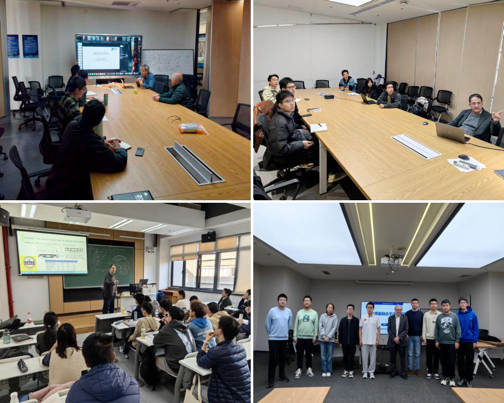 10月27日至10月30日之间,为促进外国专家与我院教师的科研与教育合作,学院协调促成了Emilio教授、Thiago教授、Germano教授和Hamiliton教授与我院教师张劲副教授对接,围绕燃料电池研究方向进行了学术交流和实验室参观。Fernando教授和Glauco教授与我院教师齐红宇教授、刘长奇副教授对接,围绕材料耐久性研究方向进行了报告分享和学术交流。Thiago教授与王娟教授对接,围绕甲醇制氢及氢燃烧研究方向进行学术交流。Emilio教授与邱璐教授、张大义教授团队对接,围绕拓扑优化进行了报告分享和学术交流。Alberto教授与梁洁副教授对接,围绕制氢技术开展了学术交流并商讨了联合申请国际合作项目的相关事宜。Adson教授与郭昊副教授对接,现场参观风洞实验室并进行学术交流。此外,邱璐教授还邀请Emilio教授、Alberto教授参与本科生《传热学》、《科研课堂》授课,将国际资源引入课堂。