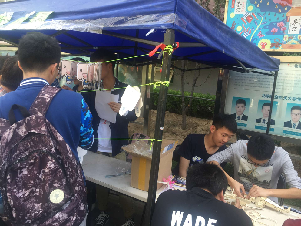 本次的外场活动在公寓楼间的十字路口处举行。共由五个部分组成,分别为“制作风筝”、“手绘个性风筝”、“模型拼插”、“智力答题”、“抽积木”。此次活动旨在通过手工制作的活动与小游戏让同学们走出寝室,体验春天、亲近自然。活动的规则为来参加外场的同学们选择自己感兴趣的活动,每完成一个小活动都会获得相应的积分,凭借积分可以兑换礼品。