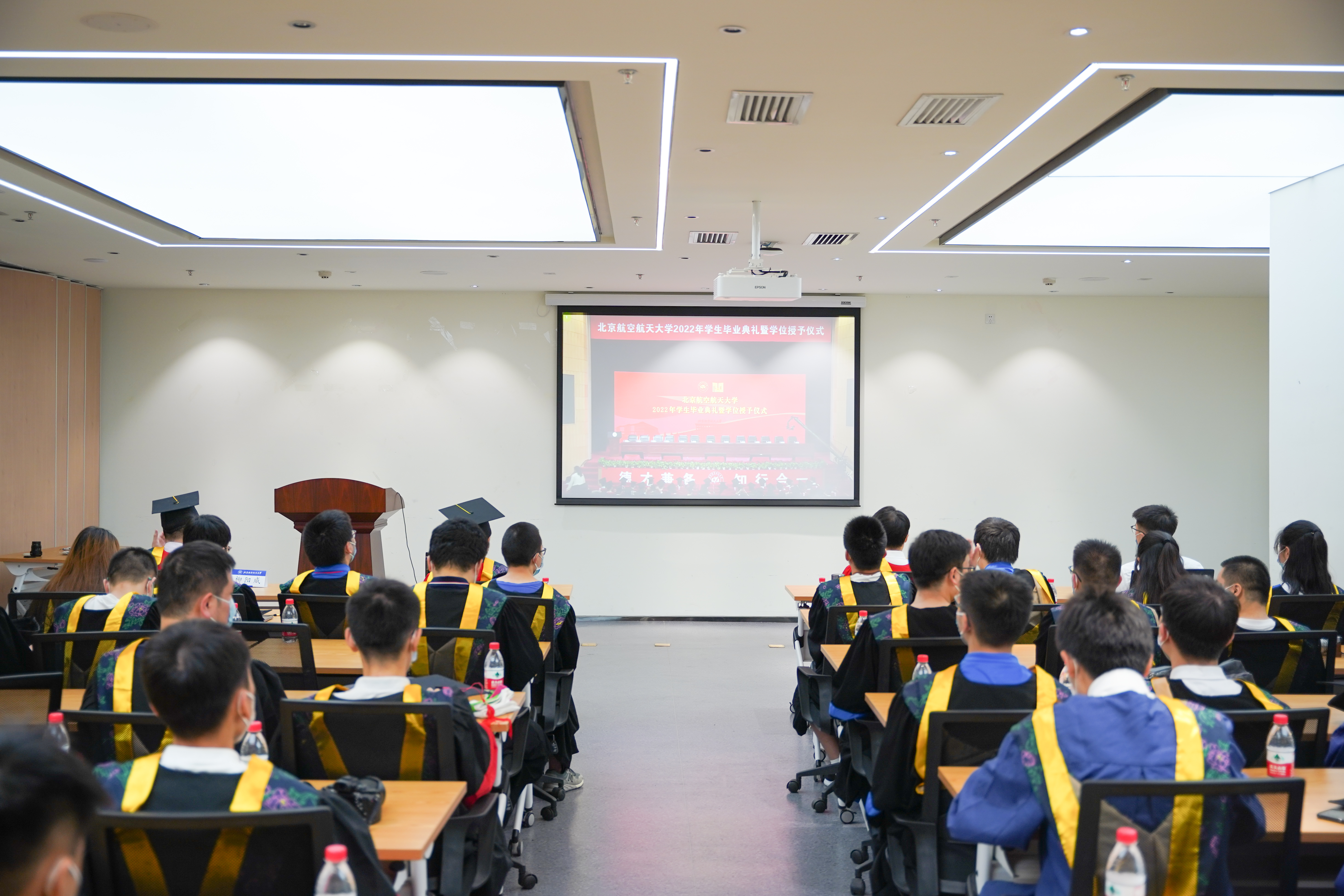 作为北航2022年学生毕业典礼的分会场,典礼采用网络直播的方式同步播放晨兴音乐厅主会场画面,并现场举行了学位授予仪式。2022年6月,学院共有204名本科生、57名硕士毕业生、30名博士毕业生顺利毕业,与会领导、导师代表为毕业生代表拨苏正冠、合影留念,并为毕业学子送上寄语和祝福。