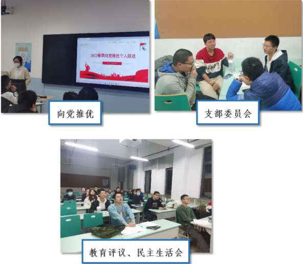 支委会由5名团干部组成,为方便活动开展,支部下分五个团小组,各小组分配有预备党员或发展对象作为平时活动的组织者、带头者,充分发挥党员的模范先锋作用。同时支委会与班委会协同工作,实现班团一体化。
