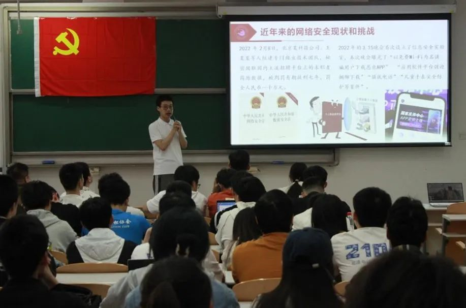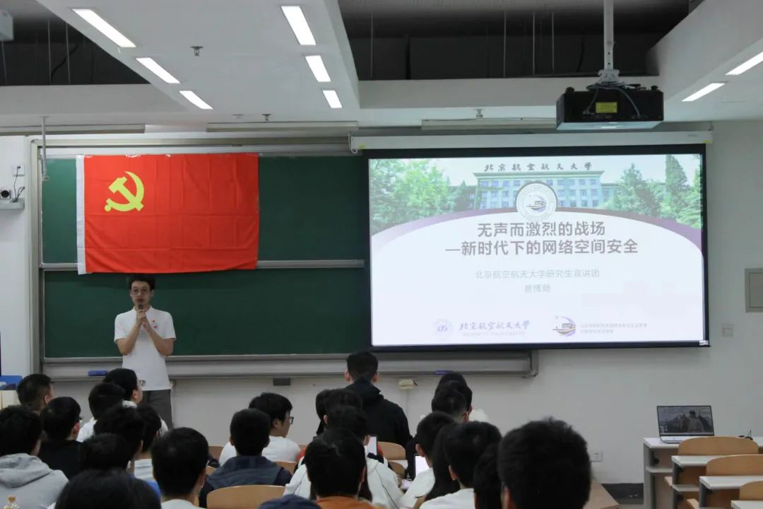 近日,动力学院2104本科生党支部牵头,邀请了动力学院2004本科生第一、第二党支部、动力学院2204、2304本科生联合党支部共同开展国家安全教育主题活动。本次活动特邀请北航宣讲团讲师廖博飏开展了“无声而激烈的战场——新时代下的网络空间安全”的主题课程。国家安全是民族复兴的根基,社会稳定是国家强盛的前提。